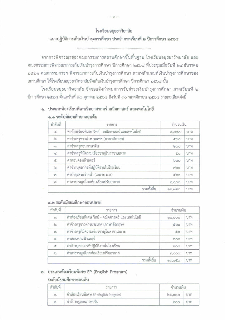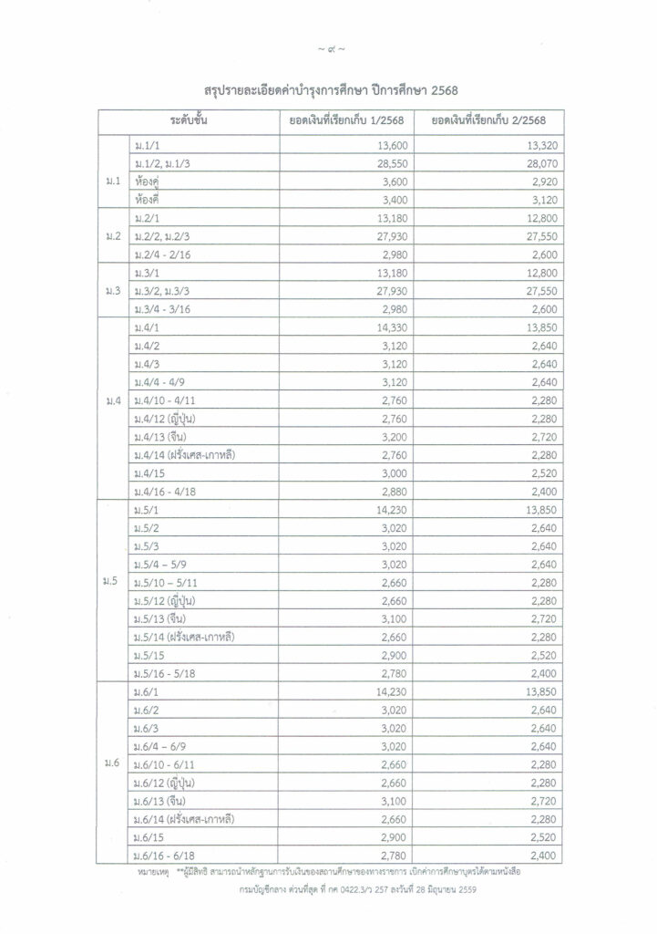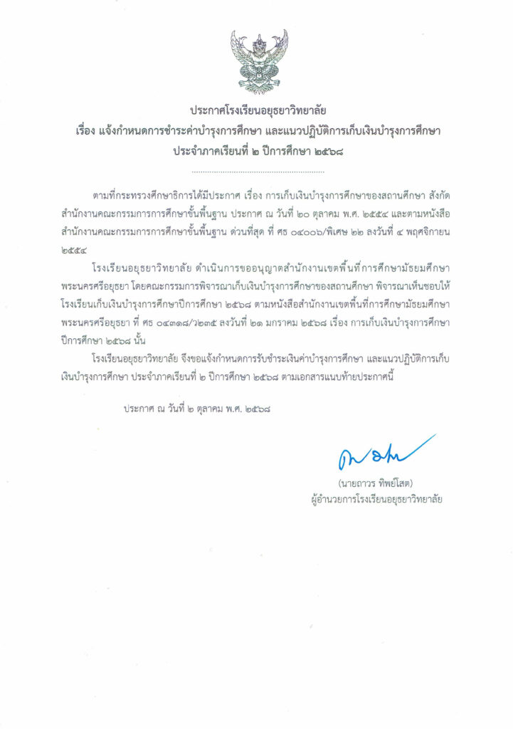1. กำหนดการชำระค่าบำรุงการศึกษา ภาคเรียนที่ 2/2568 ตั้งแต่วันที่ 30 ตุลาคม 2568 – 30 พฤศจิกายน 2568