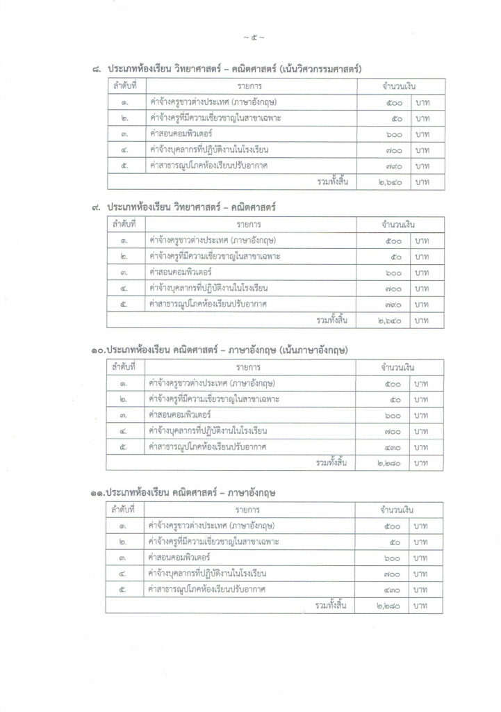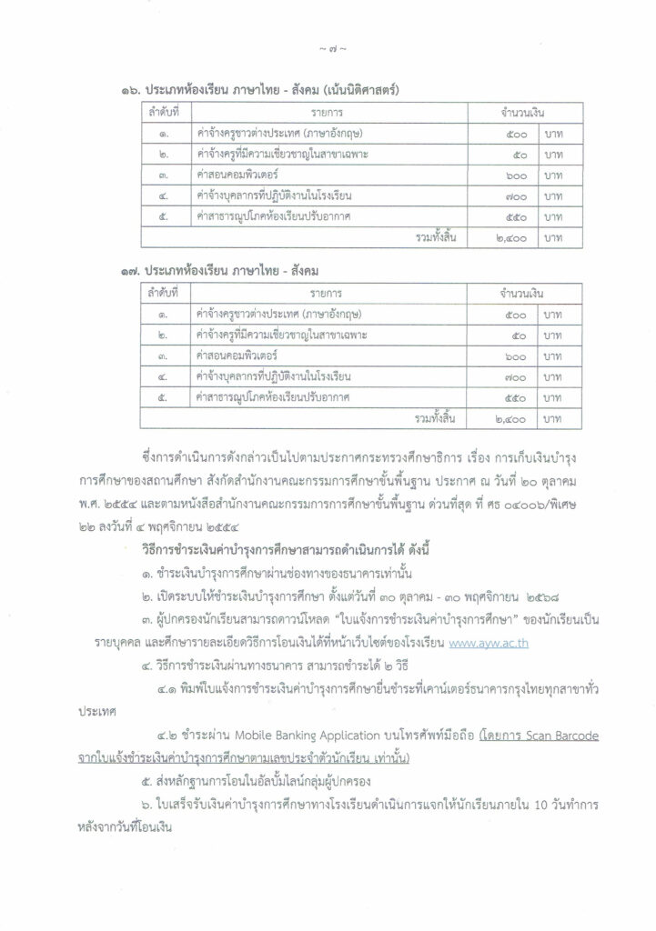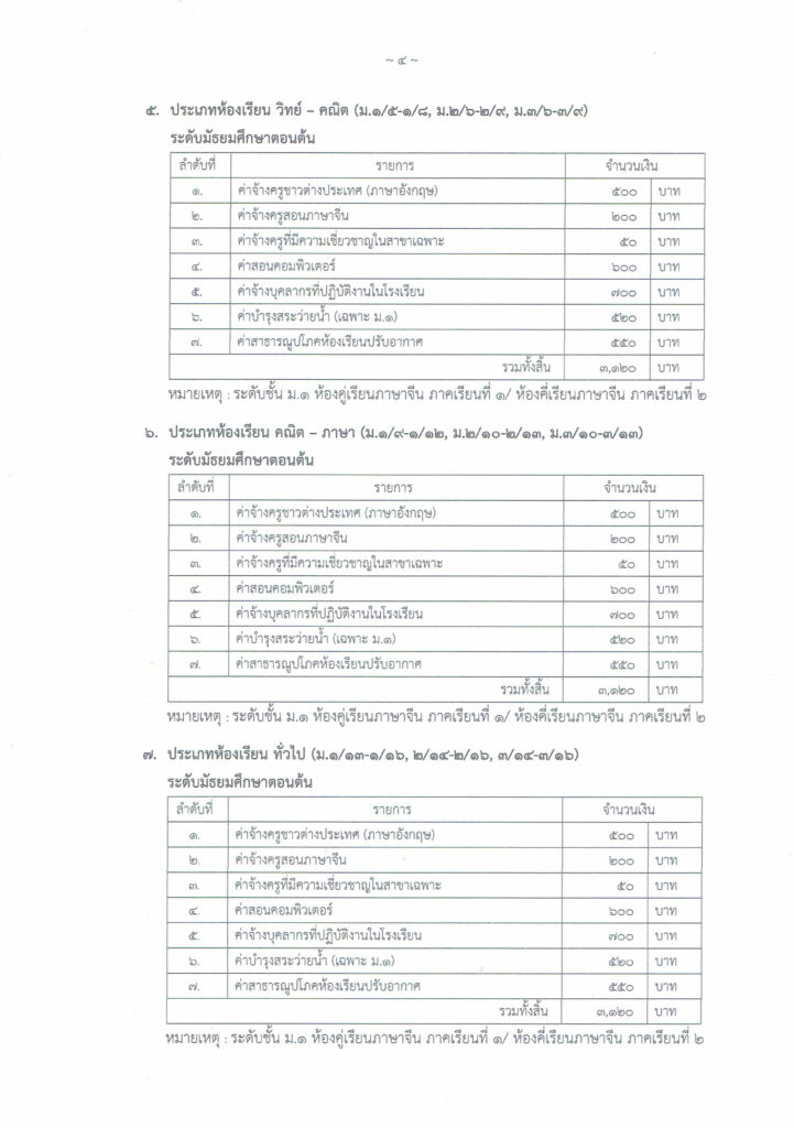 5. ใบเสร็จรับเงินค่าบำรุงการศึกษาทางโรงเรียนดำเนินการแจกให้นักเรียนภายใน 10 วันทำการ หลังจากวันที่โอนเงิน