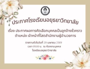 วันที่ 13 ตุลาคม 2568 นายถาวร ทิพย์โสต ผู้อำนวยการโรงเรียนอยุธยาวิทยาลัย ตรวจเยี่ยมและให้กำลังใจนักเรียนที่เข้าร่วม ค่ายโอลิมปิกวิชาการ สอวน. ค่าย 1 วิชาเคมี ปีที่ 13 ประจำปีการศึกษา 2568 ณ อาคารอเนกประสงค์ โรงเรียนอยุธยาวิทยาลัย กิจกรรมค่ายจัดขึ้นเพื่อพัฒนานักเรียนที่มีความสามารถพิเศษด้านวิทยาศาสตร์ส่งเสริมการเรียนรู้เชิงลึก ฝึกคิดวิเคราะห์ และเตรียมความพร้อมสู่การคัดเลือกเข้าค่าย สอวน. ค่าย 2 โดยมีนักเรียนจำนวน 35 คน จาก 14 โรงเรียนในกลุ่มภาคกลางตอนบนเข้าร่วม และได้รับเกียรติจากคณาอาจารย์ผู้ทรงคุณวุฒิจากมหาวิทยาลัยศิลปากร มหาวิทยาลัยเกษตรศาสตร์ และมหาวิทยาลัยธรรมศาสตร์ เป็นผู้ดำเนินการสอนตลอดระยะเวลา 14 วัน (ระหว่างวันที่ 4–17 ตุลาคม 2568) โรงเรียนอยุธยาวิทยาลัยขอแสดงความยินดีกับนักเรียนทุกคนที่ผ่านการคัดเลือก และขอส่งแรงใจให้นักเรียนทุกคนก้าวสู่เส้นทางแห่งความเป็นนักวิทยาศาสตร์ที่ภาคภูมิใจของชาติ