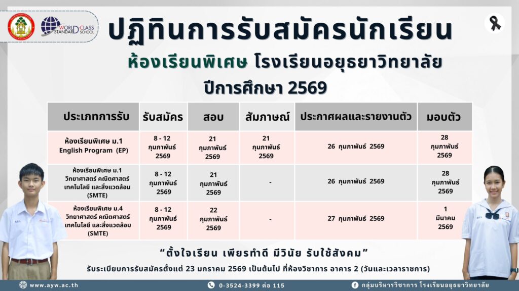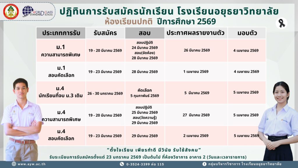 กลุ่มบริหารวิชาการ ปฏิทินการรับนักเรียนปีการศึกษา 2569 นนทกาล รูปเอี่ยม ธันวาคม 25, 2025 0 ปฏิทินการรับนักเรียนปีการศึกษา 2569 รับระเบียบการรับสมัครตั้งแต่ 23 มกราคม 2569 (วันและเวลาราชการเท่านั้น) Post Views: 4 Continue Reading Previous เยี่ยมคารวะและร่วมแสดงความยินดีแก่ ดร.ปราจิน เอี่ยมลำเนา More Stories กลุ่มบริหารวิชาการ การเตรียมความพร้อมสอบ TGAT – TPAT สำหรับนักเรียน ม.6 นนทกาล รูปเอี่ยม ธันวาคม 4, 2025 0 กลุ่มบริหารวิชาการ การแข่งขับสอบวัดทักษะวิชาการระดับชาติ(สวช.) ประจำปี 2568 (รอบคัดเลือกตัวแทนจังหวัด) นนทกาล รูปเอี่ยม พฤศจิกายน 15, 2025 0 กลุ่มบริหารวิชาการ ปฐมนิเทศนักศึกษาฝึกประสบการณ์วิชาชีพครู นนทกาล รูปเอี่ยม พฤศจิกายน 5, 2025 0 ใส่ความเห็น ยกเลิกการตอบอีเมลของคุณจะไม่แสดงให้คนอื่นเห็น ช่องข้อมูลจำเป็นถูกทำเครื่องหมาย *ความเห็น * ชื่อ * อีเมล * เว็บไซต์ Δ