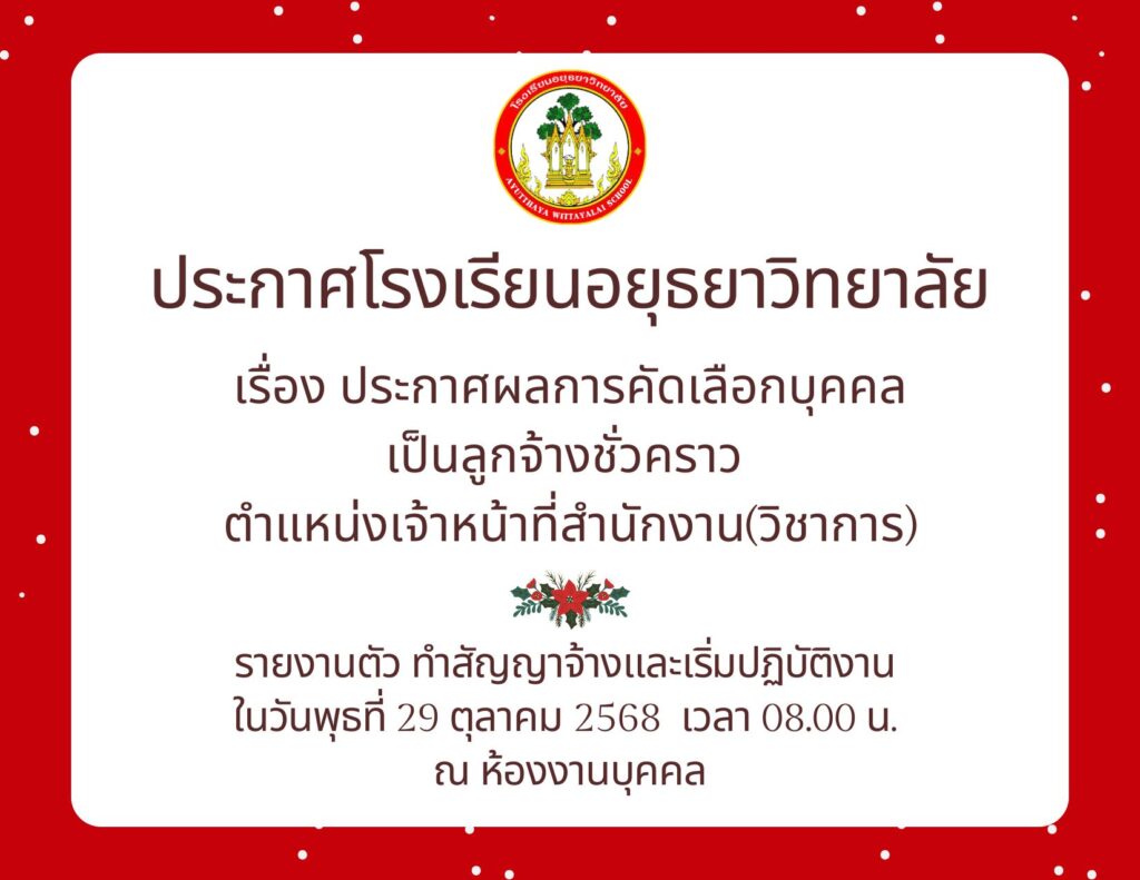 ประกาศผลการคัดเลือกบุคคลเป็นลูกจ้างชั่วคราว ตำแหน่ง เจ้าหน้าที่สำนักงาน(วิชาการ)