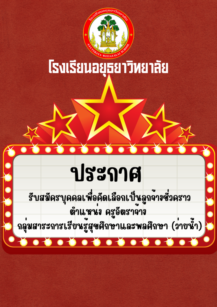 ประกาศรับสมัครบุคคลเพื่อคัดเลือกเป็นลูกจ้างชั่วคราว ตำแหน่ง ครูอัตราจ้าง (สอนว่ายน้ำ)