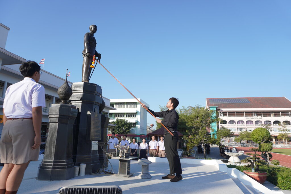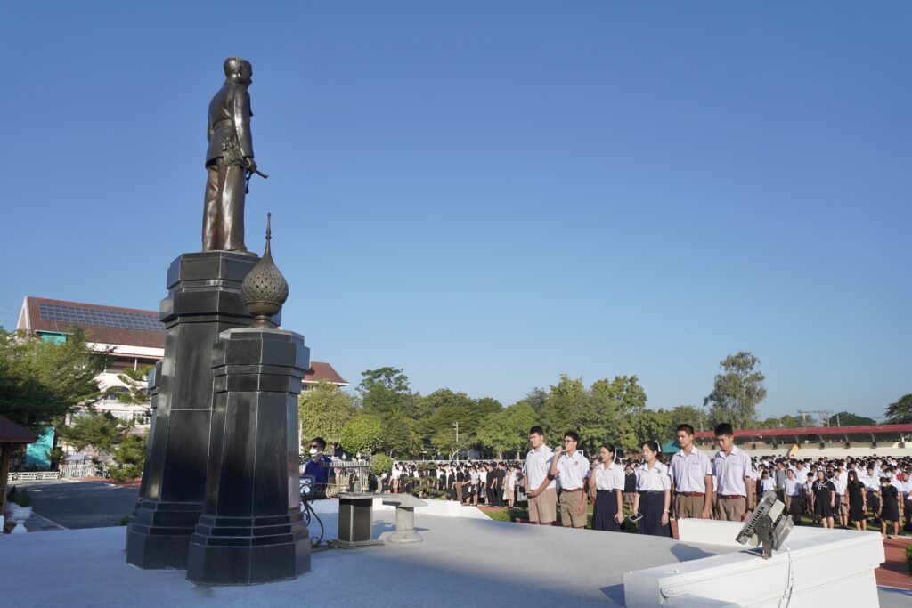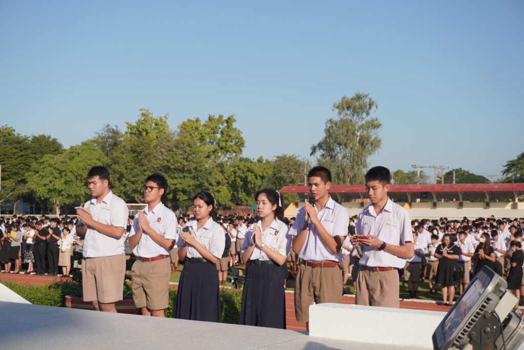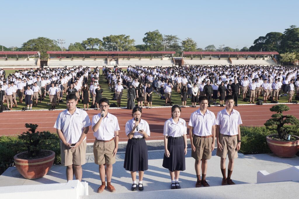 บรรยากาศหน้าเสาธงเป็นไปอย่างเรียบร้อยและอบอุ่น สร้างความรู้สึกผ่อนคลายและกำลังใจให้แก่นักเรียน ก่อนแยกย้ายเข้าสู่ห้องสอบในวันแรกของการสอบกลางภาคเรียน.