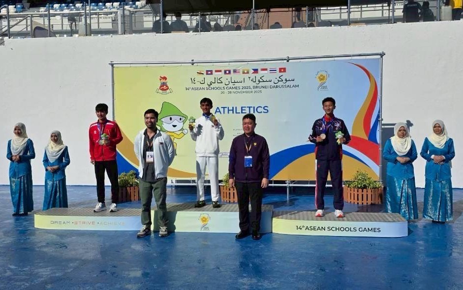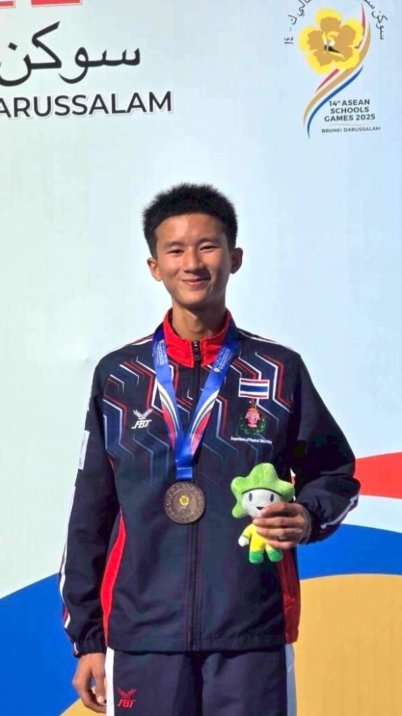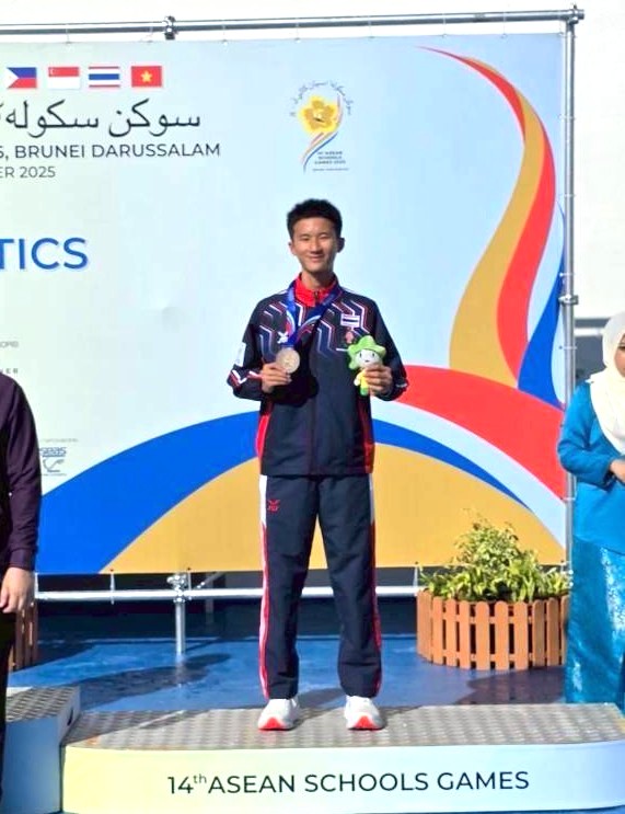 ผอ.ถาวร ทิพย์โสต ชื่นชมและแสดงความยินดีกับ “นาย ชยพล เจริญพานิช” นักเรียน ม.5/4 คว้า เหรียญเงิน ในการแข่งขันกีฬานักเรียนอาเซียน ครั้งที่ 14 (14th ASEAN Schools Games 2025) ณ กรุงบันดาร์เสรีเบกาวัน เนการาบรูไนดารุสซาลาม ในประเภท วิ่ง 1,500 เมตร เป็น เหรียญที่ 2 ของรายการ!