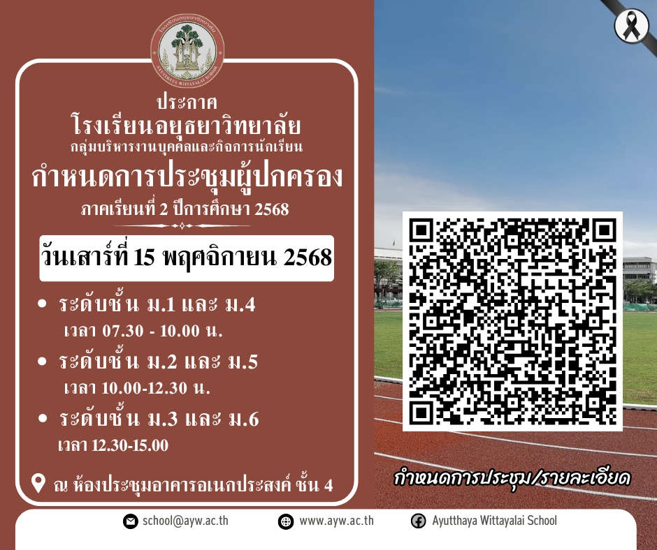 กำหนดการประชุมผู้ปกครอง ภาคเรียนที่ 2/2568